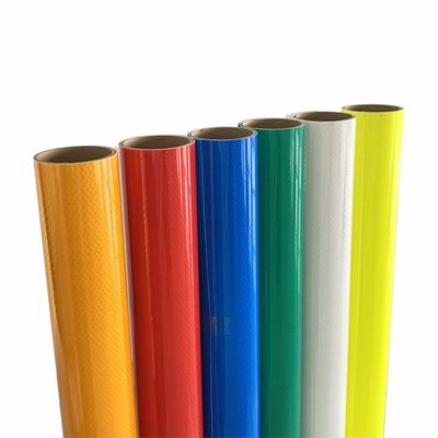 White Yellow Red Green Blue Fluorescent Color Diamond Grade Prismatic Reflective Vinyl Sheet Roll meets the stringent requirements of ASTM Standard Specification for Retroreflective Sheeting for Traffic ControlΟ ρολ του διαμαντιού με πρισματικό ανακλαστικό φύλλο βινυλίου είναι διαθέσιμος σε διάφορα χρώματα, συμπεριλαμβανομένου του λευκού, κίτρινου, κόκκινου, πράσινου, μπλε και του φθορισμένου πράσινου λευκού.Αυτό επιτρέπει την εφαρμογή σε διάφορα σενάρια ελέγχου της κυκλοφορίας, βοηθώντας στην ταχεία αναγνώριση της σήμανσης από οδηγούς και πεζούς.