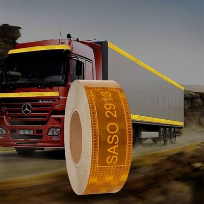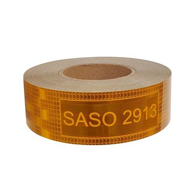 LU SASO 2913 Σαουδική Αραβία Ρετροαντανακλαστικό αυτοκόλλητο Κίτρινη μεταλλωμένη ακρυλική αντανάκλαση για την ασφάλεια της κυκλοφορίας,Το σήμα που επισημαίνεται σε ένα φορτηγό είναι ικανό να δώσει στους άλλους χρήστες του δρόμου ορατότητα του φορτηγού μπροστά και την ικανότητα να αντιλαμβάνονται την απόστασή τους και την απόσταση προσέγγισης.Το σχήμα του φορτηγού καθιστά την ορατή αντίληψη ευκολότερη.Η αντανακλαστική ταινία SASO 2913 είναι ισχυρή και άκαμπτη με μια υψηλής απόδοσης επιθετική κόλλα που κολλά σταθερά στα φορτηγά, ρυμουλκούμενα, επίπεδα κρεβάτια, δεξαμενόπλοια, ελκυστήρες, φορτηγά, μηχανές ανάμειξης σκυροδέματος και άλλα οχήματα έκτακτης ανάγκης.
